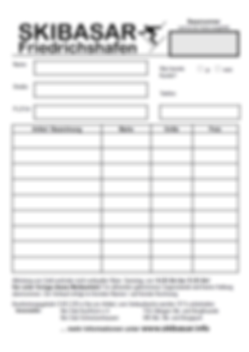 Es besteht die Möglichkeit, Artikel vorab online einzustellen unter: https://skibasar.skiundbergfreunde.de/access.php
